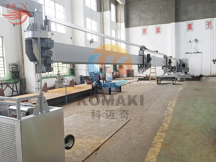 軌道式擦窗機(jī)的整個機(jī)構(gòu)安裝在一個能在水平軌道上行走的底盤上,靠行走底盤的運(yùn)動來完成整個擦窗機(jī)的水平運(yùn)行。這種形式的擦窗機(jī)一般安裝于坡度不大的屋面上,與建筑物相對獨(dú)立且安全系數(shù)高。由于擦窗機(jī)的起升、回轉(zhuǎn)、卷揚(yáng)等機(jī)構(gòu)靈活多樣,所以軌道式擦窗機(jī)能滿足大部分建筑物的要求,只要建筑物屋面預(yù)留出足夠的空間和允許荷載,其臂長可以從幾米到幾十米,因配重隨著臂的增長而增加,整機(jī)重量也由2~3噸至幾十噸不等,因此在建筑結(jié)構(gòu)設(shè)計(jì)時就須考慮擦窗機(jī)的集中荷載對屋面結(jié)構(gòu)的影響,增加必要的承重梁柱等結(jié)構(gòu),以滿足安裝擦窗機(jī)的必要條件。